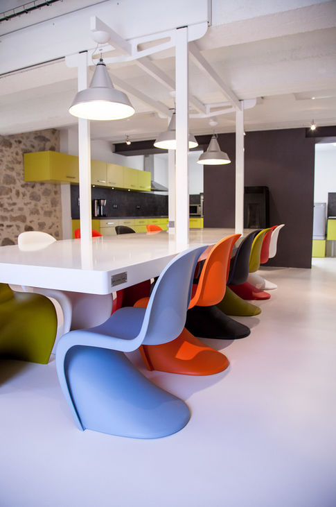 La restructuration de l'espace, le choix des matériaux et des coloris ont apporté de la modernité, de la luminosité et du confort tout en conservant les traces industrielles et l'univers atypique du lieu.